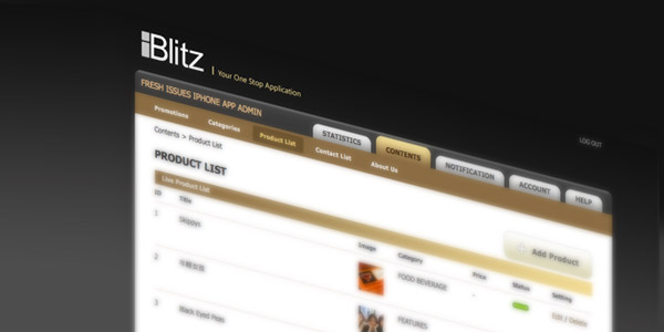 iBlitz works by the use of a central content management system. This means that all contents that are shown to your users through iBlitz can be added/edited/deleted solely through your web browser. Contents will be dynamic and updated as often as required and will be presented to your users at real time.