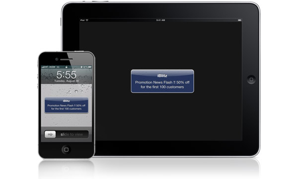 iBlitz leverage on the push notification system provided by Apple. This allows you to notify your app users of important news, events or promotions even if they are not using the app at that point in time.